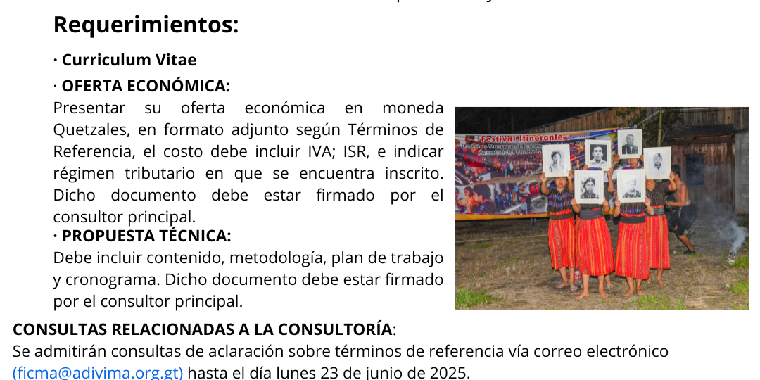 Jun102025Noticias Recientes TDR-EXPO-ITINERANTEDescarga Formato-Oferta-Exposicion-ItineranteDescarga Categoría: Noticias RecientesPor Administrador Adivimajunio 10, 2025 Autor: Administrador Adivima Navegación entre publicacionesAnteriorPublicación anterior:TDR PREVENCIÓN DE VIOLENCIASiguientePublicación siguiente:CONVOCATORIA SERVICIO AL CLIENTE IMPARTIDO POR INTECAP.Related postsCONVOCATORIA TURISMO RURAL Y AULAS VIVAS IMPARTIDO POR INTECAP.octubre 10, 2025Sin títulooctubre 9, 2025CONVOCATORIA SERVICIO AL CLIENTE IMPARTIDO POR INTECAP.octubre 9, 2025TDR PREVENCIÓN DE VIOLENCIAjunio 10, 2025Convocatoria a estudiantesoctubre 22, 2024Sin títulooctubre 22, 2024